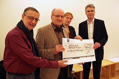 Insgesamt hat der Freundeskreis seit seiner Gründung vor knapp vier Jahren bereits über 30.000 Euro aus Spenden und Mitgliederbeiträgen zur Verfügung stellen können, um fast Verlorenes zu retten, Wertvolles zu erhalten und Gegenwart zu pflegen. "Dennoch bleibt die kulturpolitische Verantwortung für die Museen bei den Trägern, also dem Unstrut-Hainich-Kreis und der Stadt Mühlhausen", betonte Dr. Falk Walther, der stellvertretende Freundeskreis-Vorsitzende, während der Scheckübergabe.Im Namen der Museumsfreunde richtete er der Stiftung Westthüringen ebenfalls ein herzliches Dankeschön für die Unterstützung aus.